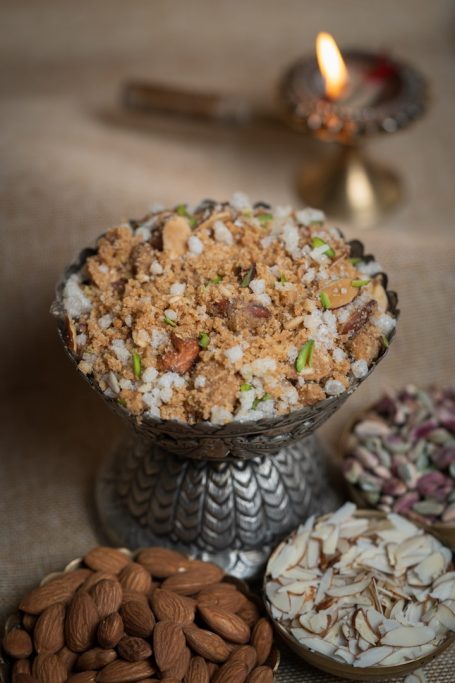 Prasadam is a sacred offering in Sanatana Dharma, typically food, blessed by deities and then shared with devotees as a spiritual blessing along with the meal. Through donations of food and money; volunteers source and prepare a hearty Bharatiya Vegetarian meal to be shared with devotees and the public.
